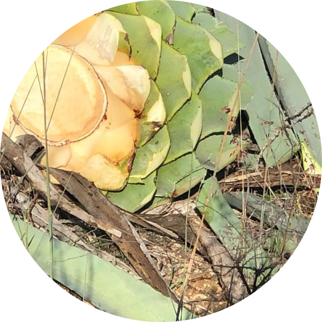 The cuishe (karwinsky) is a micro-endemic wild agave, since its distribution began it has been reduced to 132 square km around the world. It is born in limestone soils with little rainfall and reaches maturity at 12 years. This ensemble preserves the aromas of huisaches, pines and oaks that abound in the area, as well as a light mineral perfume with floral notes provided by the cuishe ensemble. Its robust and grassy character is appreciated in its flavor. In our design, we have reflected the combination of the leaves of these two agaves: the uniformity of the leaves of the cultivated espadin agave but also the robust touch and strength of the wild cuishe.
